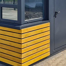 Варианты включают профилированный лист или сэндвич-панели. Внешняя отделка обеспечивает защиту от погодных условий и придает эстетичный вид модульному посту.